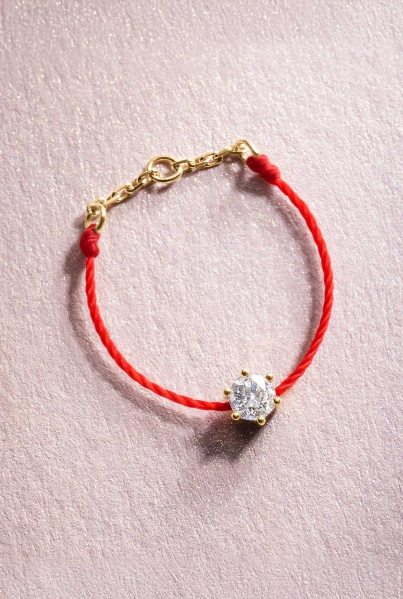 パリの工房でデザインされた«Absolu»は、ヴィンテージと高級品の完璧な組み合わせです。 6個の繊細なイエローゴールドの爪に0,10ダイヤモンドが置かれ、象徴的な赤い糸がリングの美しさを際立たせています。 宝石は、それを取り巻く光と色を反射するために提唱されます。 80のスレッドカラーから選択してリングをカスタマイズします。 Absoluは、オリジナルで貴重な指輪を探して女性を誘惑する本物の万華鏡です。