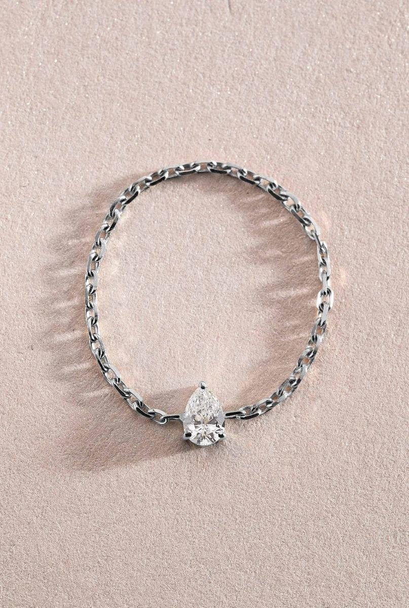 Altesse Chain ring with 0.1ct pear shaped diamond in white gold prong setting