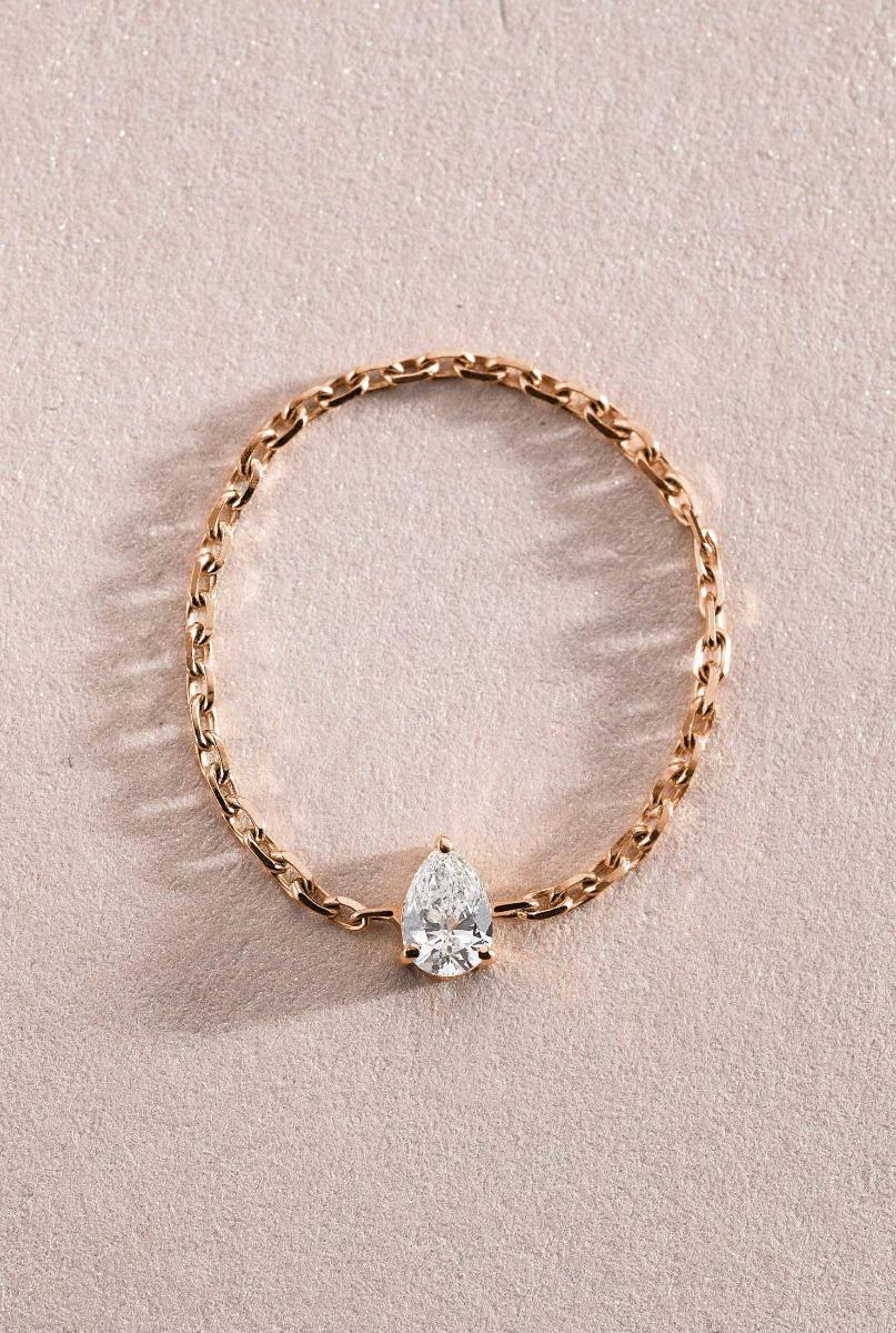 Altesse Chain ring with 0.1ct pear shaped diamond in rose gold prong setting
