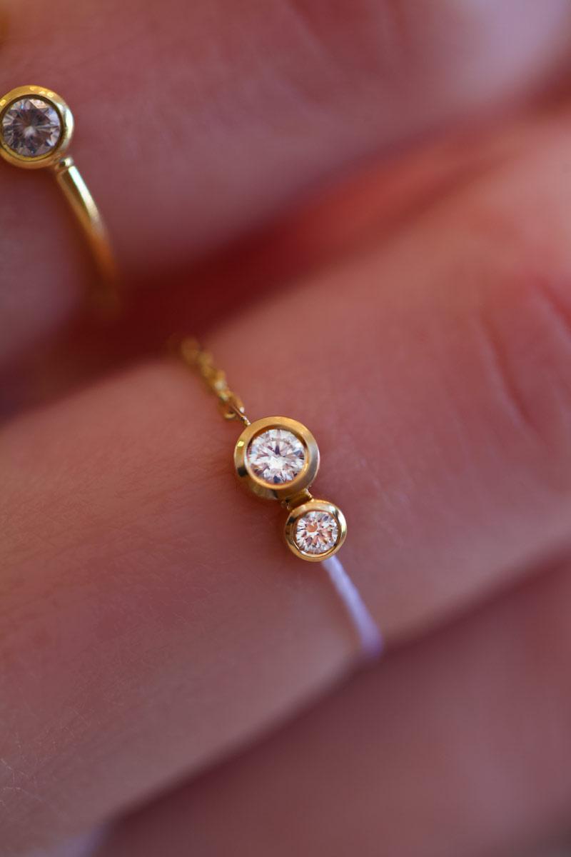 無限のシンボルは、愛と果てしない加護として一組のダイヤモンドで表されています・・・。すばらしく象徴的なこのモデルのために、0,1カラットと0,05カラットのダイヤモンドをそれぞれクローズドセッティングであしらい、ずっと一緒にいられるように一つにつなぎ合わせました。チェーンが優美さをもたらすこの独創的なリングは、繊細にあなたの指にぴったりと合うことでしょう。チェーンは4色のゴールドから選ぶことが出来ます。