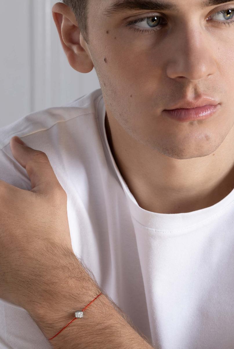Dé String bracelet with diamond-paved dice in white gold