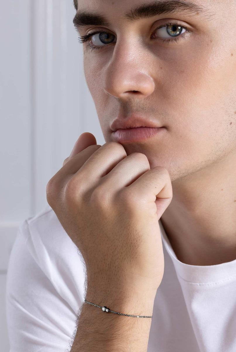 Infinite Chain bracelet with 0.15ct diamond in black gold bezel setting