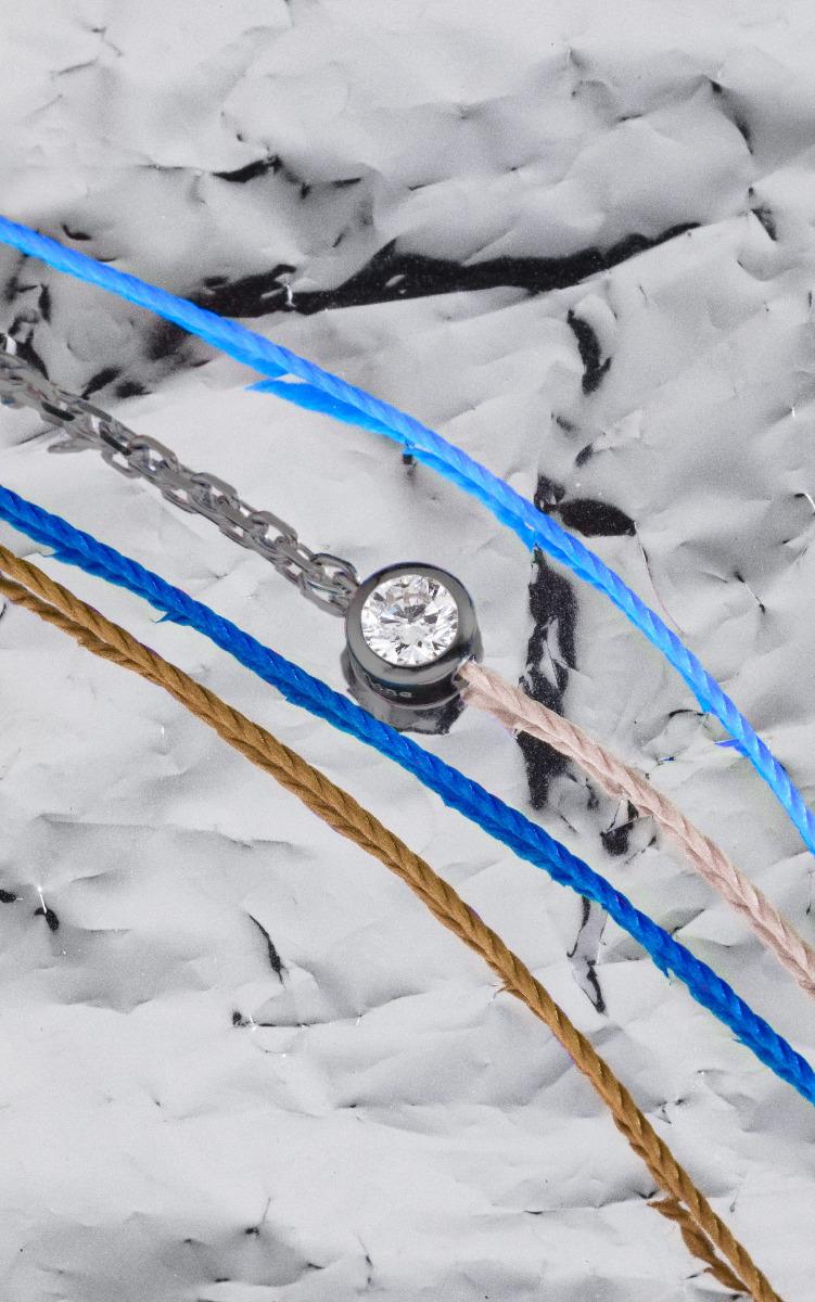 Pure Brodé String and chain bracelet with 0.1ct diamond in black gold bezel setting