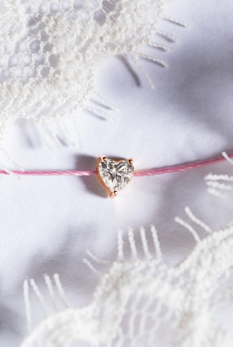 Sa Bien-Aimé String bracelet with 0.2ct heart shaped diamond in rose gold prong setting