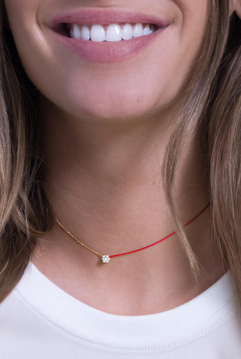 So Illusion String and chain necklace with 0.1ct diamonds in yellow gold cluster style setting