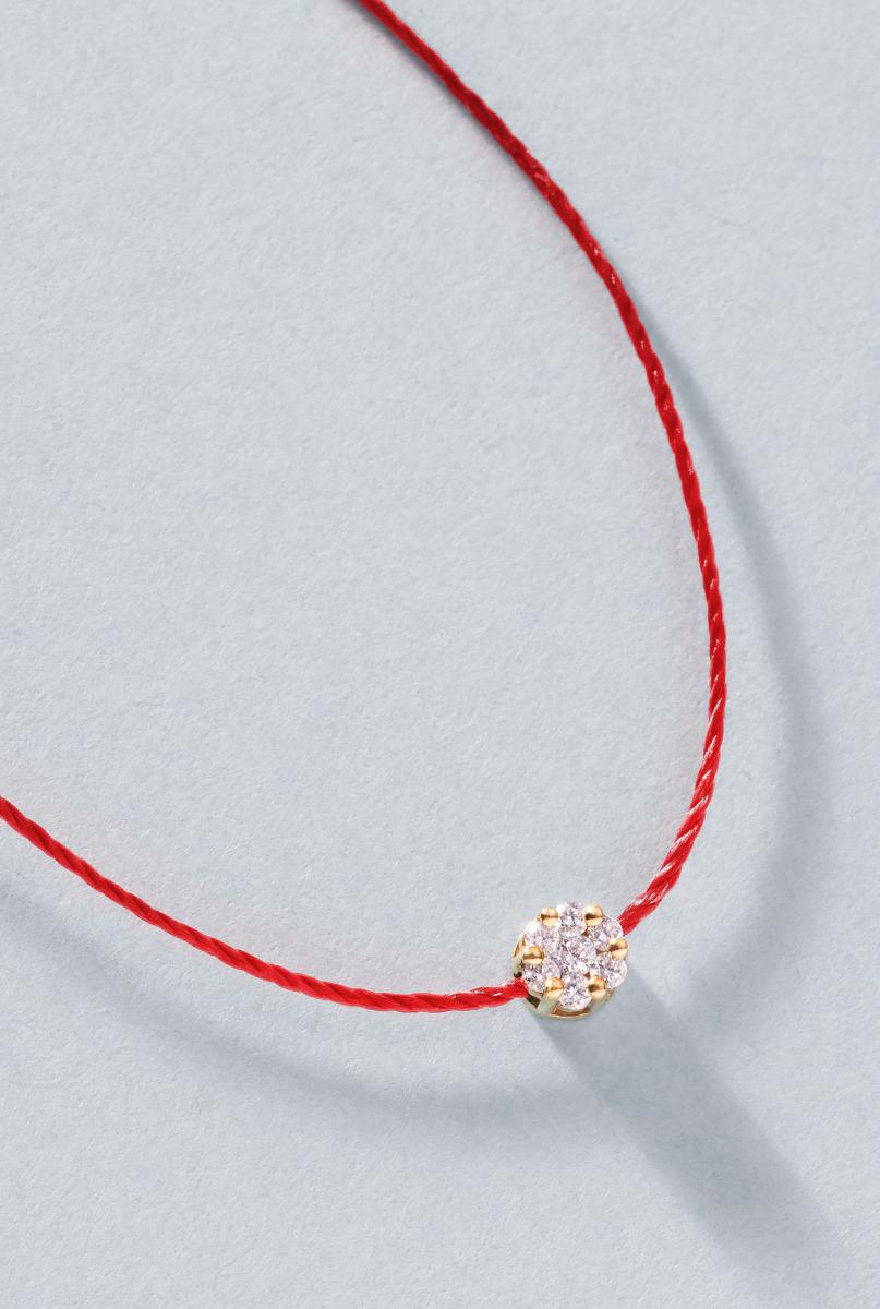 So Illusion String necklace with 0.1ct diamonds in yellow gold cluster style setting